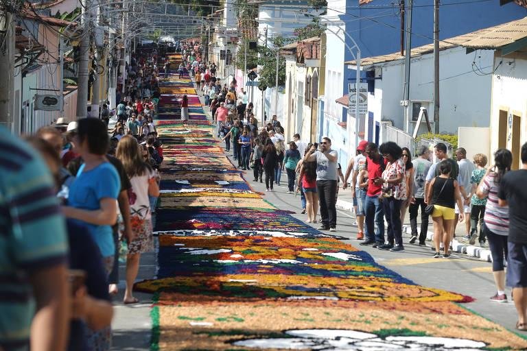 As celebrações religiosas são conhecidas pelos tradicionais tapetes coloridos, por onde passam as procissões com a hóstia consagrada.