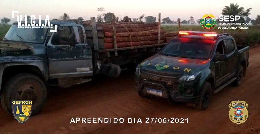 No mesmo dia, o Gefron, em patrulhamento pela MT-199, no município de Vila Bela da Santíssima Trindade (540 km ao Oeste de Cuiabá), avistou um caminhão Ford F14.000, parado às margens da estrada com as portas abertas, com o motor ligado e sem ninguém por perto. Após vistoria, foram localizados 60 palanques de madeira aroeira (aproximadamente três metros). A extração desse tipo de madeira é proibida, conforme a lei de crimes ambientais n° 9.605/98.
