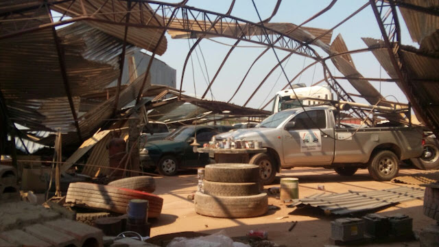 O vento que durou cerca de 20 minutos, arrancou telhas, destruiu outdoors, entornou estruturas de barracões, e causou um grande prejuízo material.